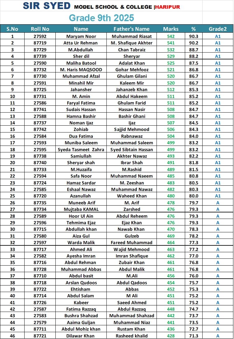Our HSSC students at Sir Syed Model School & College have once again demonstrated outstanding academic excellence. With a high pass percentage and numerous students